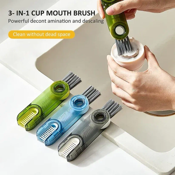 - 3 in 1 Cup Lid Cleaning Brush - U-shaped brush: clean stubborn stains around the cup mouth. Gap Brush: Clean the narrow grooves on the inner wall of the cup cover. Corner brush with hard bristles: Remove the dirt in the corner groove of the container.