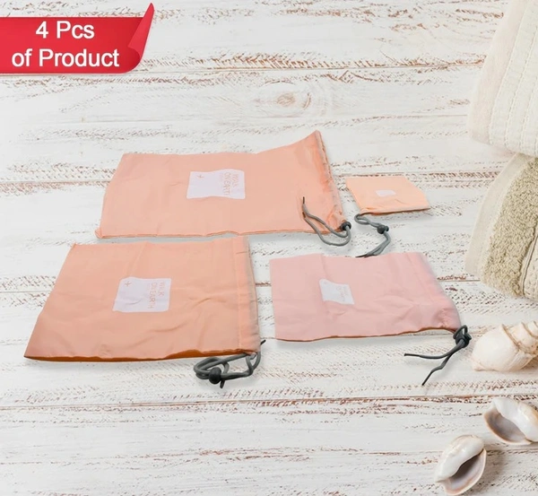 Travel Storage Bag Waterproof Nylon Drawstring Pouch Men and Women Folding Clothes Classified Organizers Packing Shoes Luggage Bags (4 Pc Set)