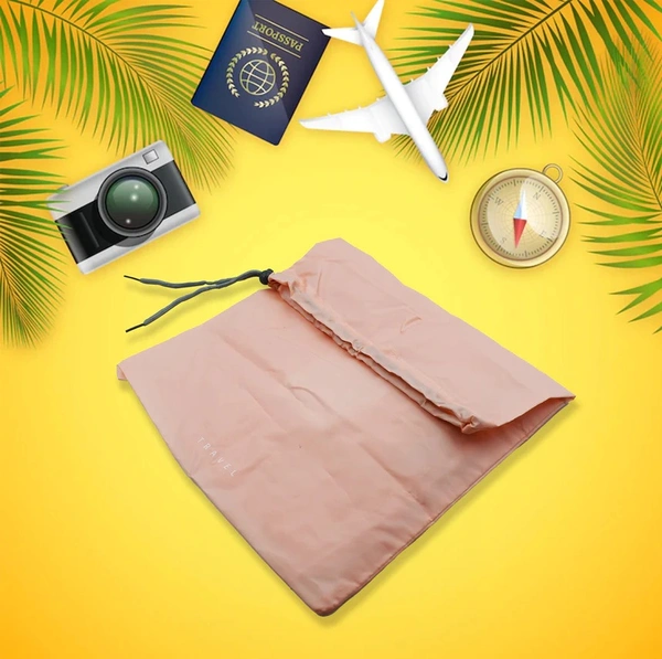 (4 PC SET) TRAVEL STORAGE BAG WATERPROOF NYLON DRAWSTRING POUCH MEN AND WOMEN FOLDING CLOTHES CLASSIFIED ORGANIZERS PACKING SHOES LUGGAGE BAGS ( Brown color )