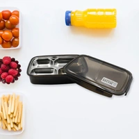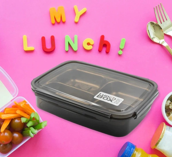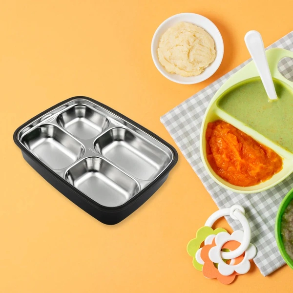BLACK TRANSPARENT 4 COMPARTMENT LUNCH BOX FOR KIDS AND ADULTS, STAINLESS STEEL LUNCH BOX WITH 4 COMPARTMENTS FOR OFFICE, TRAVEL, SCHOOL, HOME