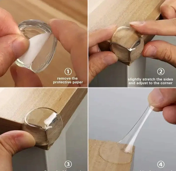 - Clear Corner Protectors comes with Pre-applied Adhesive tape, simply peel tape backing, and place at the desired corner.