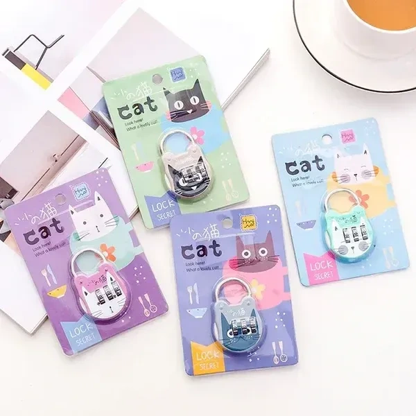Cute cat suitcase padlock, Cat design luggage lock, Adorable travel padlock, Secure suitcase padlock, Cat motif travel lock, Cute padlock for luggage, Travel bag lock with cat design, Small padlock for suitcase