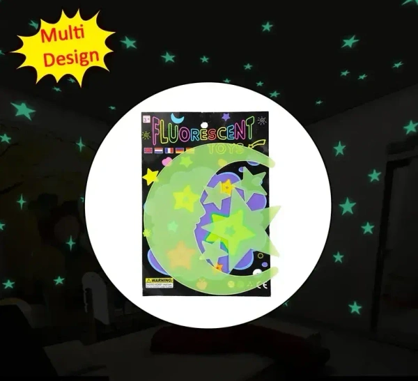 Glow in The Dark Glowing Dark Moon and Star Fluorescent Wall Ceiling Stickers Fluorescent Toys - Set of 6