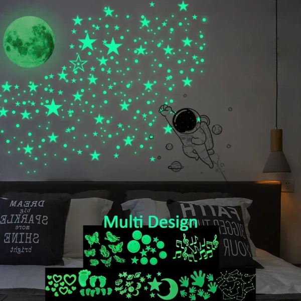 Glow in The Dark Stars for Ceiling, Glow in The Dark Stars and Moon Wall Decals, 6 pieces Ceiling Stars Glow in The Dark Kids Wall Decors, Perfect for Kids Nursery Bedroom Living Room