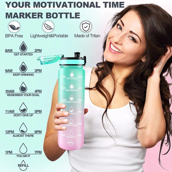 - Motivation and Time Marker: There is motivational slogan and time markers engraved on the water bottle. You can also measuring your daily water consumption inside through the translucent bottle. It will help you to keep your health and reach fitness goals.