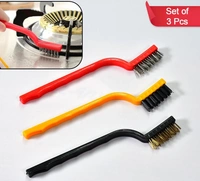 (Pack Of 3) Mini Wire Brush Set Brass Nylon Stainless Steel Bristles Household Cleaning Brush for Gas Stove, Smoke Machine Tool Burner Tiles Tap Rust Removal Welding Slag Dirt & Paint Scrubbing.