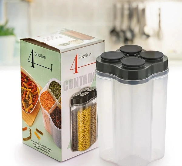 PLASTIC LOCK FOOD STORAGE 4 SECTION CONTAINER JAR FOR GROCERY, FRIDGE CONTAINER.