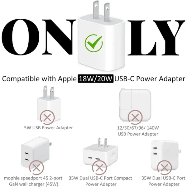 - COMPATIBILITY- Compatible with ip charger 18-20W USB-C only.