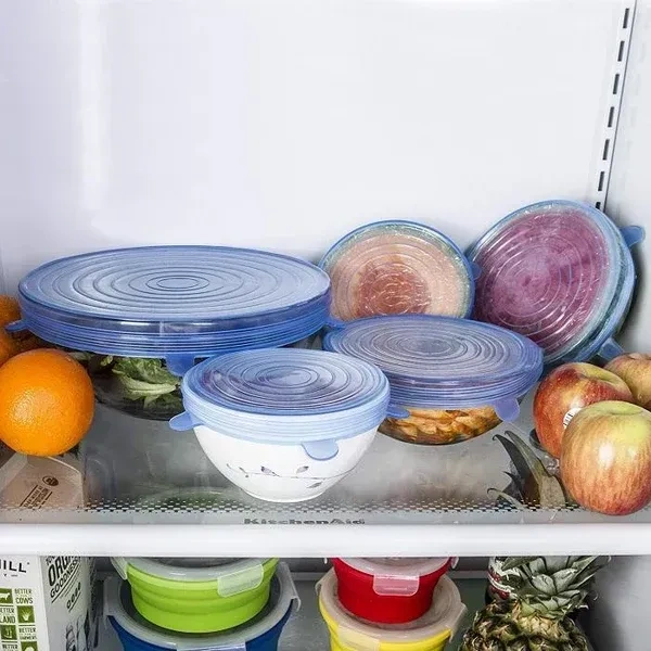 The silicone stretch cover lids will reduce your plastic waste and help you save money, since you will no longer need to buy cellophane to cover your leftover food fresh. Plus, the bowl lid does a much better job at keeping your food fresh!