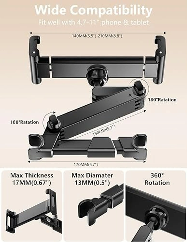 Protective & Safe Design: Lined with soft silicone padding, the bracket protects your device and your car’s headrest from scratches while increasing grip to prevent the tablet from sliding out during sudden stops.