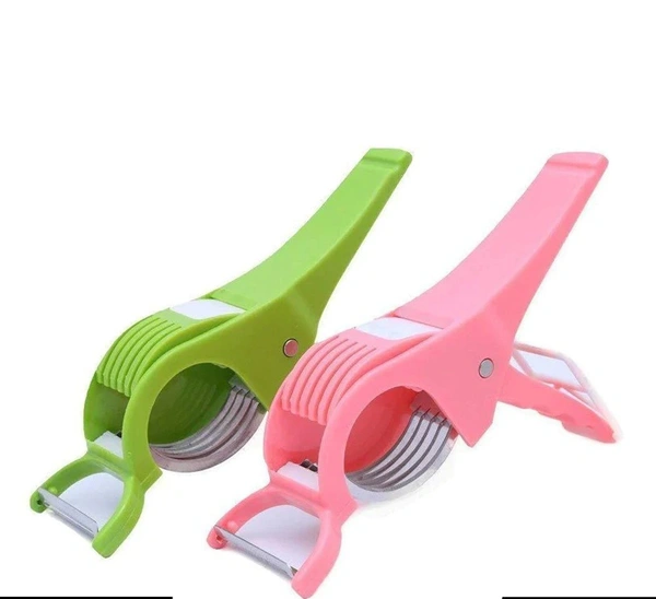 Featuring 5 extra-sharp stainless steel blades, the Famous multi cutter with peeler makes easy work of cutting vegetables and fruits for various purposes. With its smart design, you simply have to press the cutter along its ergonomic handle to obtain neatly cut vegetables, thus keeping your hands safe. The peeler is attached to the body of the cutter to ensure that you do not have to hunt for a peeler when you require it urgently.